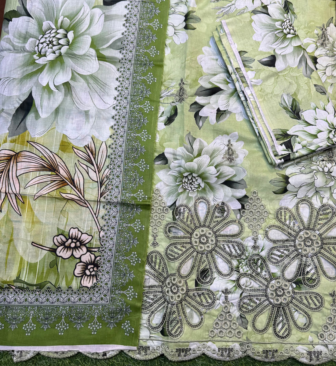 Laser Cutwork 3 piece Unstitch Lawn Dress