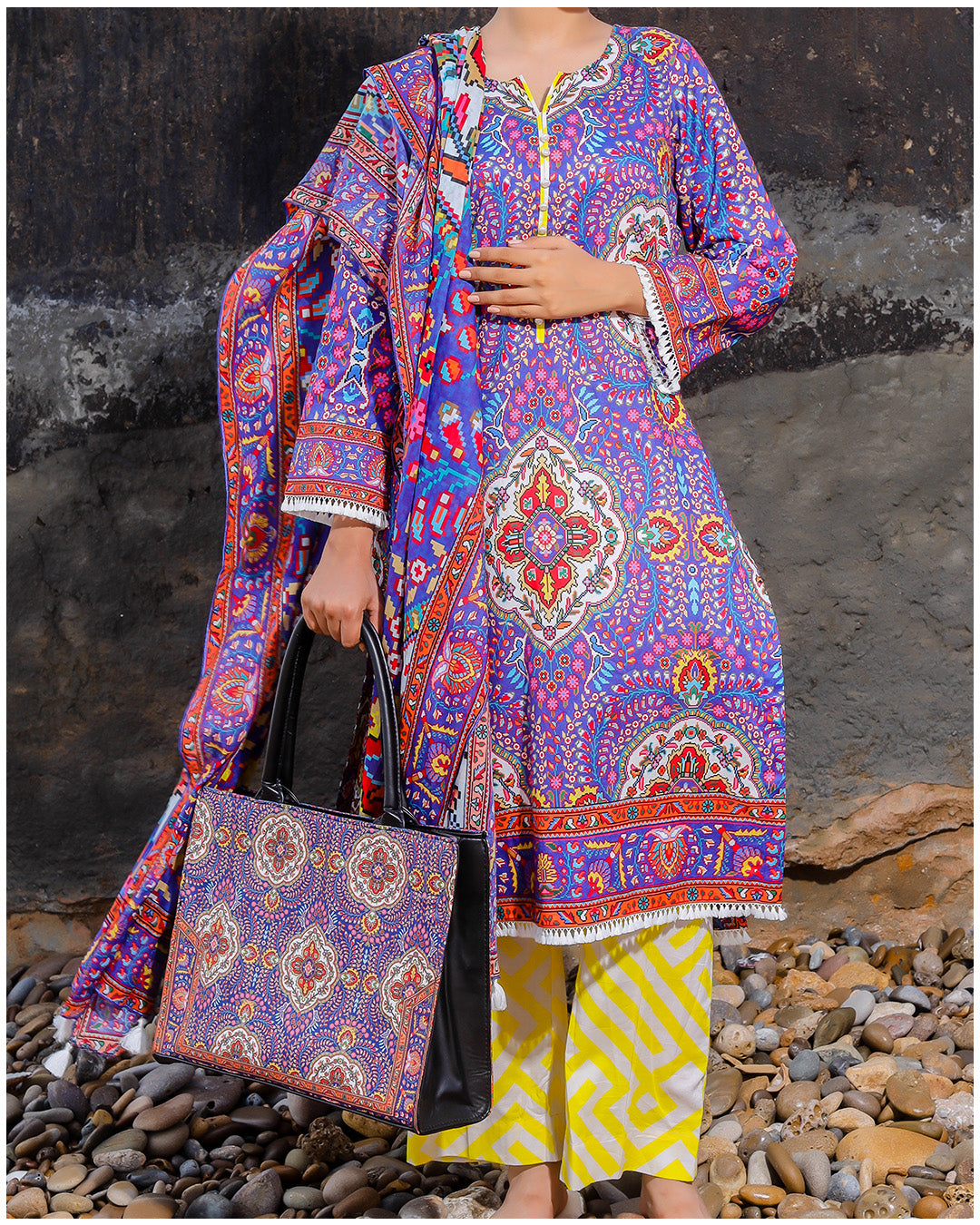 Product Description Elevate your wardrobe with this elegant 3-piece unstitched lawn suit inspired by the...