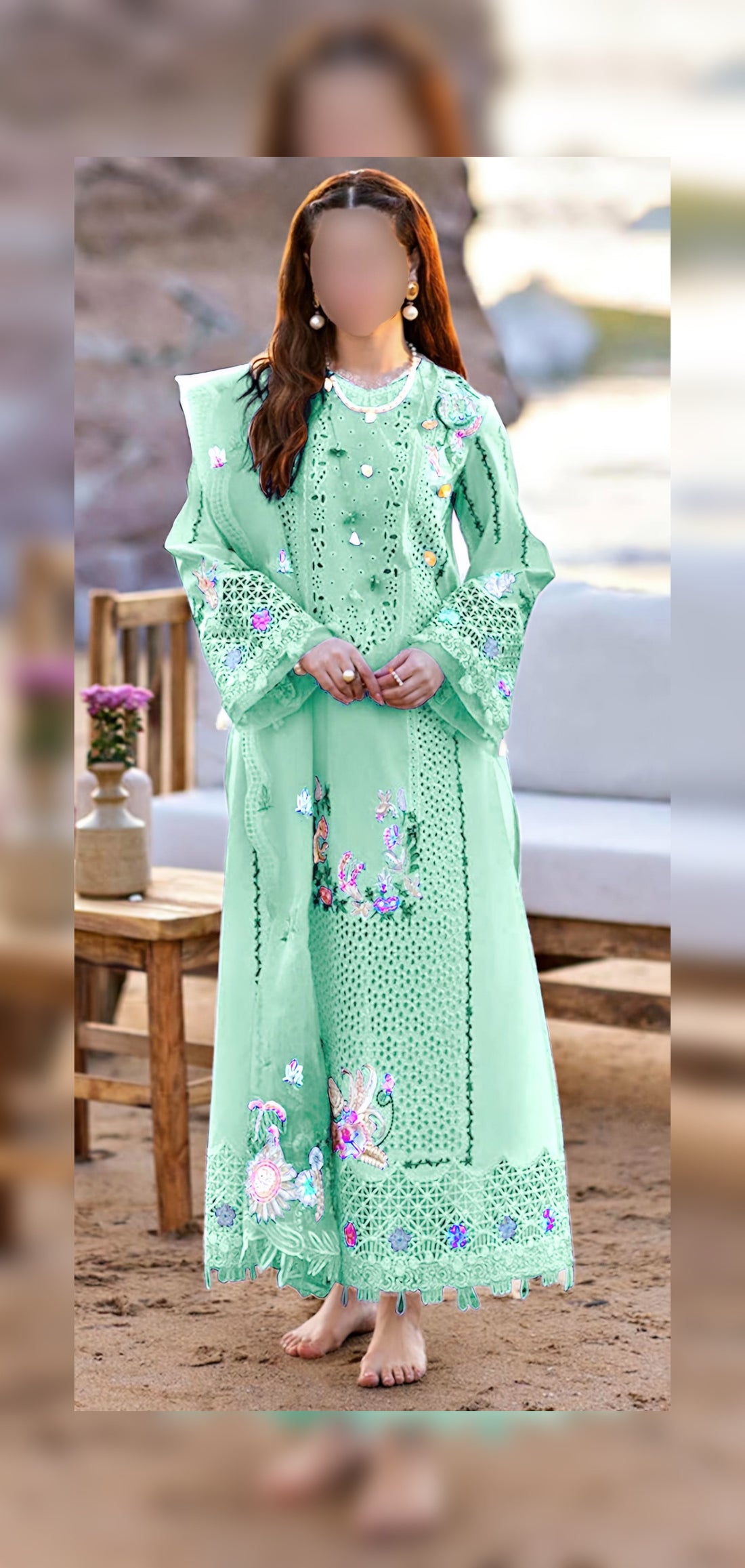 FABRIC:* Soft Cotton* Soft Chiffon Dupatta *Color: skin DETAILS:* Front: Chikankari and-Multithread Embroidery* Back: Plain*...