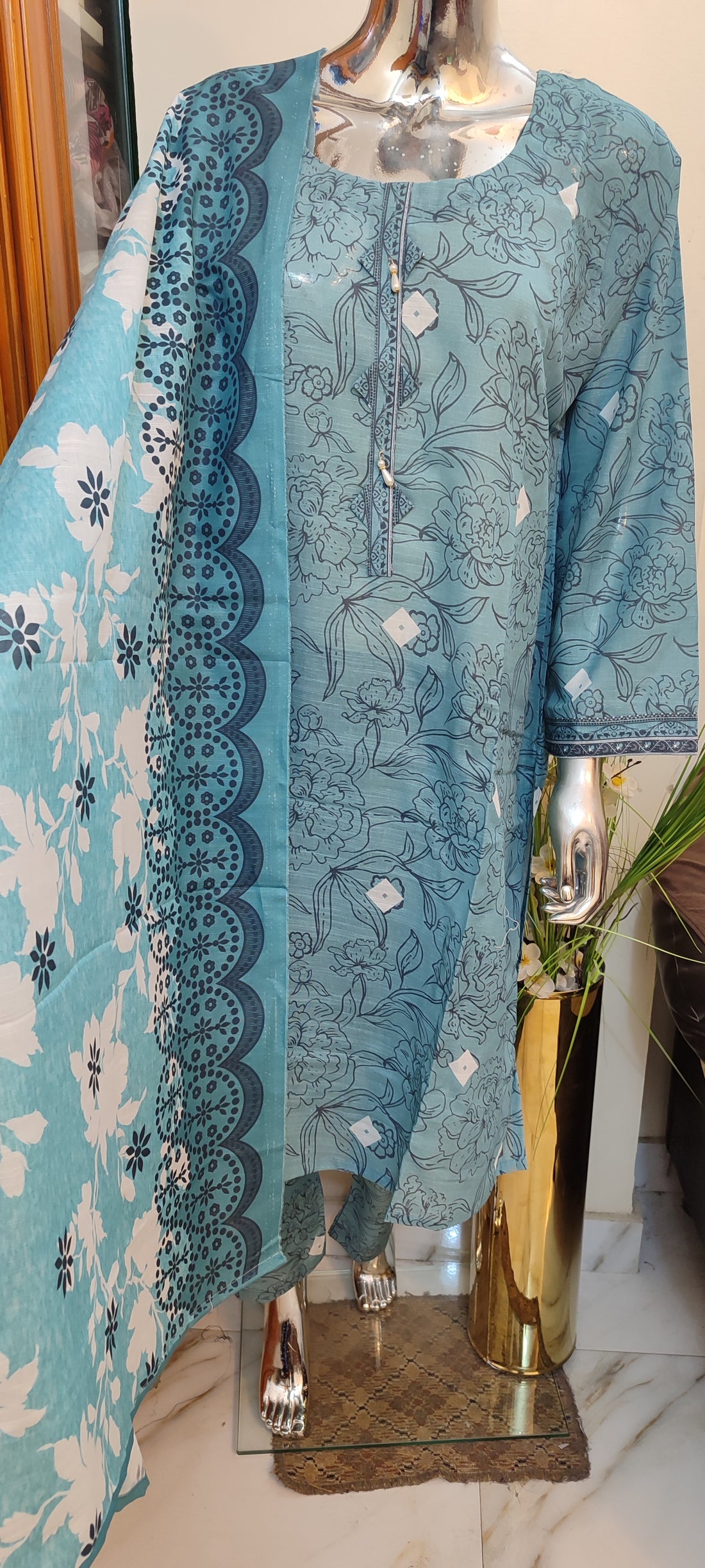 Elegant Summer Unstitched Cotton Suit – 3PC Embroidered Perfection - nz-330 - NZ COLLECTION