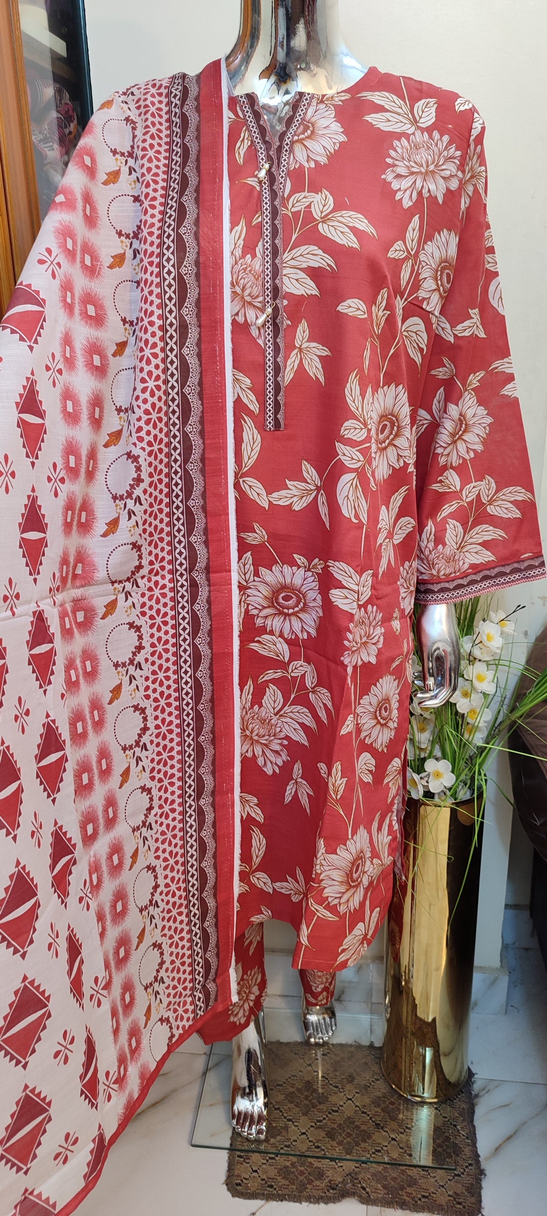 Maria.B Inspired 3pcs Unstitch Dress (rust)(master copy) - NZ COLLECTION