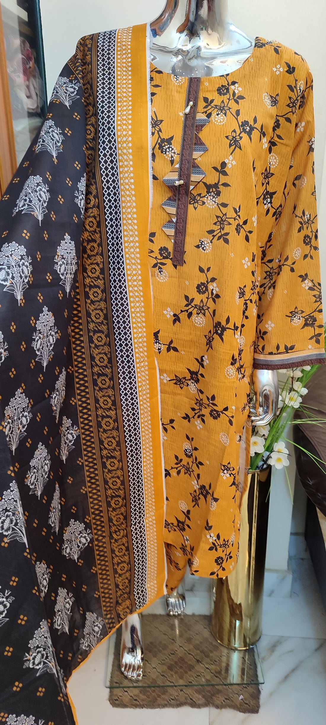 Maria.B Inspired 3pcs Unstitch Dress (rust)(master copy)