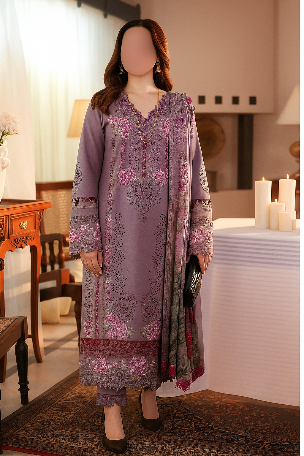 Elegant Embroidered Unstitched 3-Piece Cotton dress