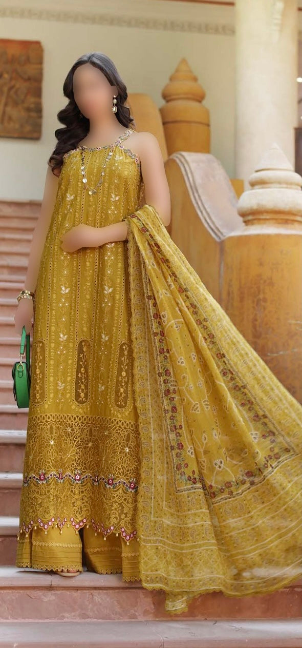 Premium Unstitched 3-Piece Lawn Dress FABRIC:* Soft Lawn Cotton* Soft Chiffon Dupatta DETAILS: * Color:...