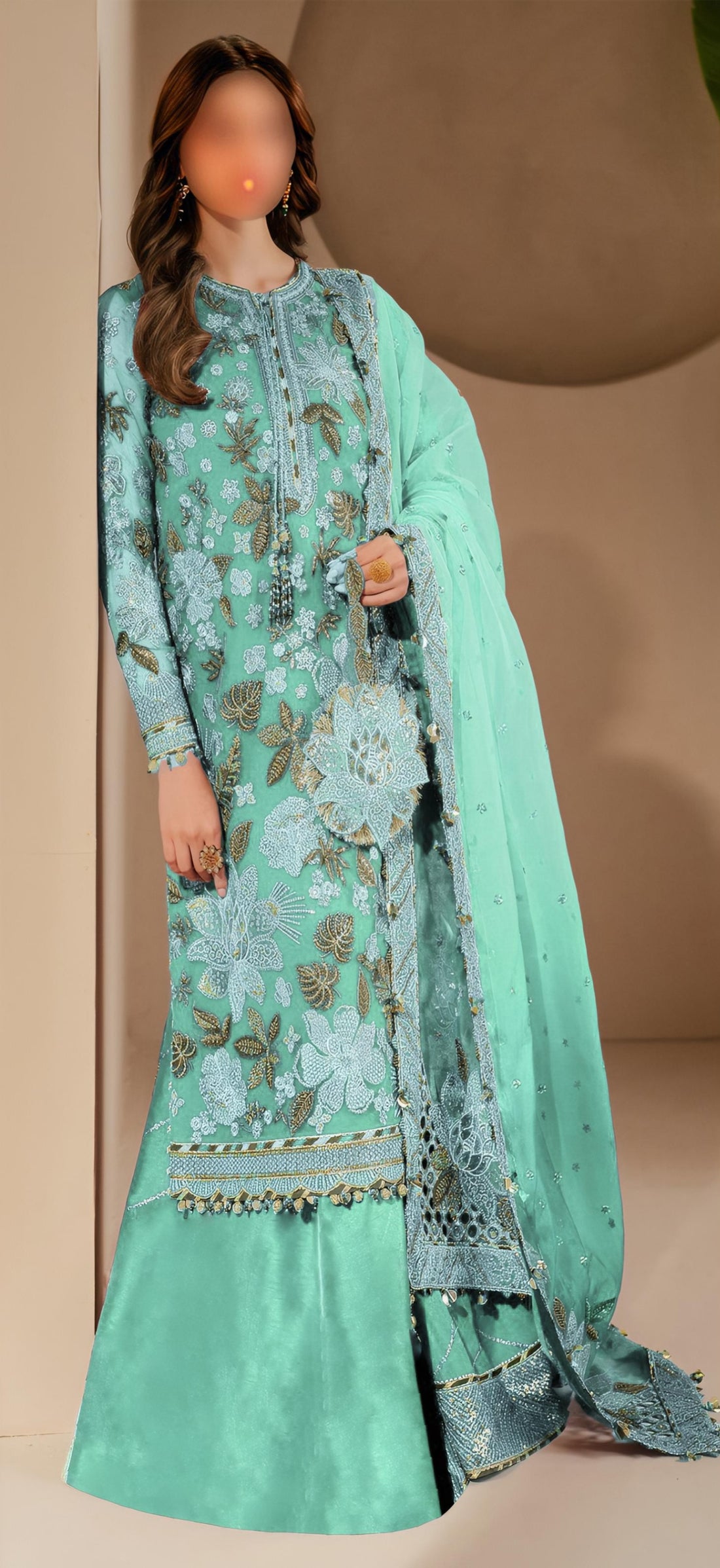 FABRIC:* Soft Lawn Cotton* Soft Chiffon Dupatta * Dress Color: Dhani DETAILS:* Front: Boring Chikankari,...