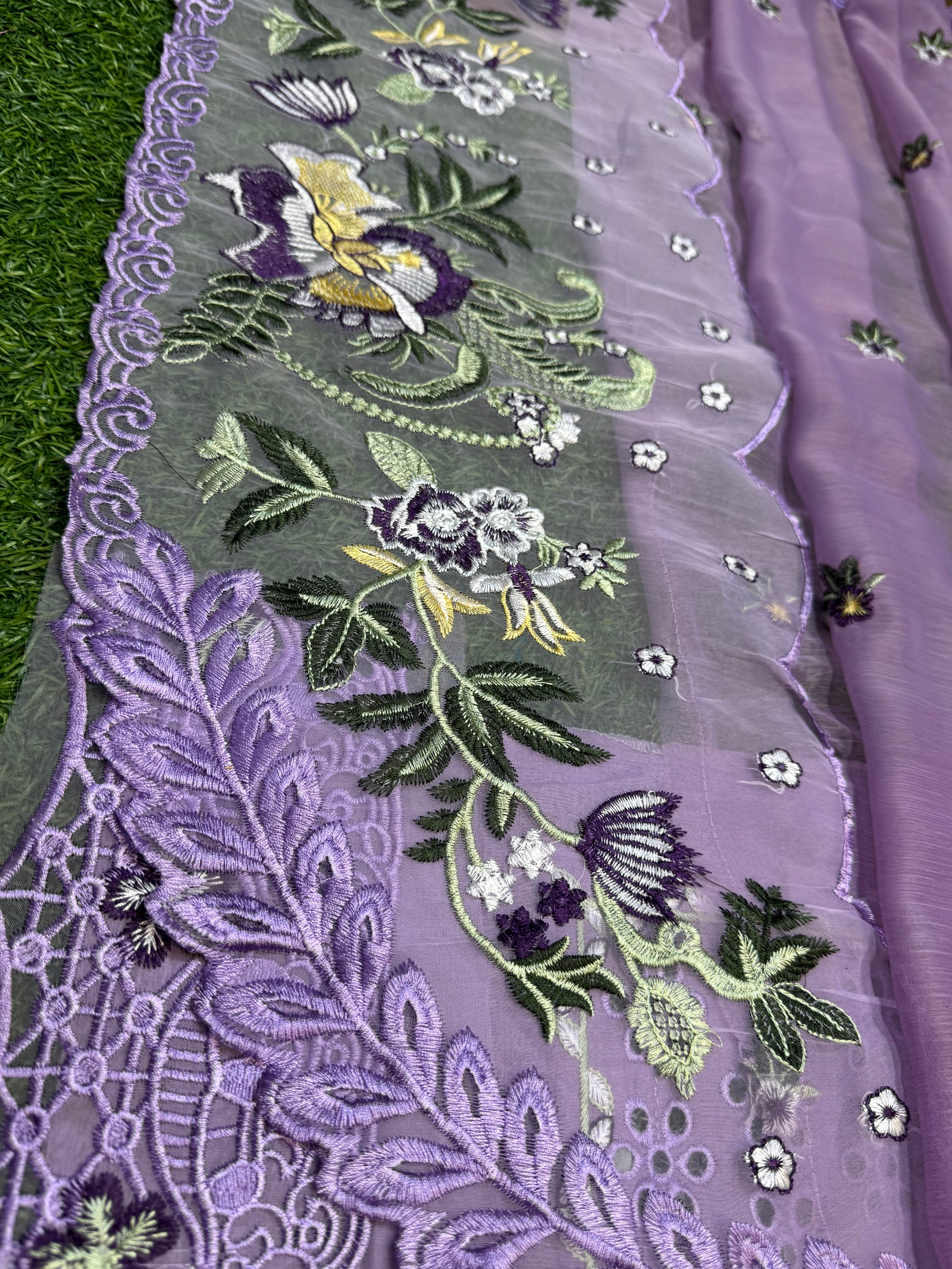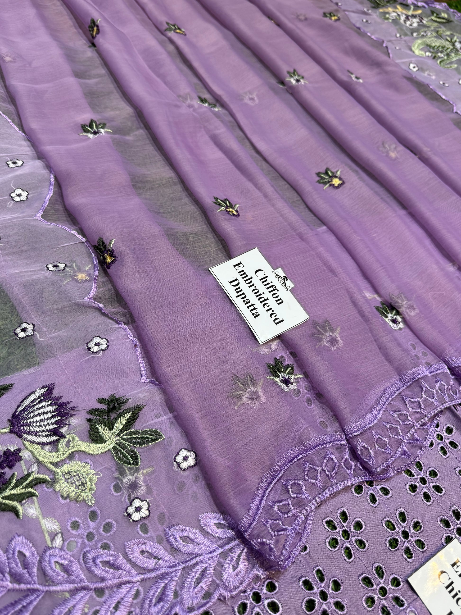 Dupatta: Luxury Chiffon with Heavy Embroidery & 4-Side Embroidered Borders