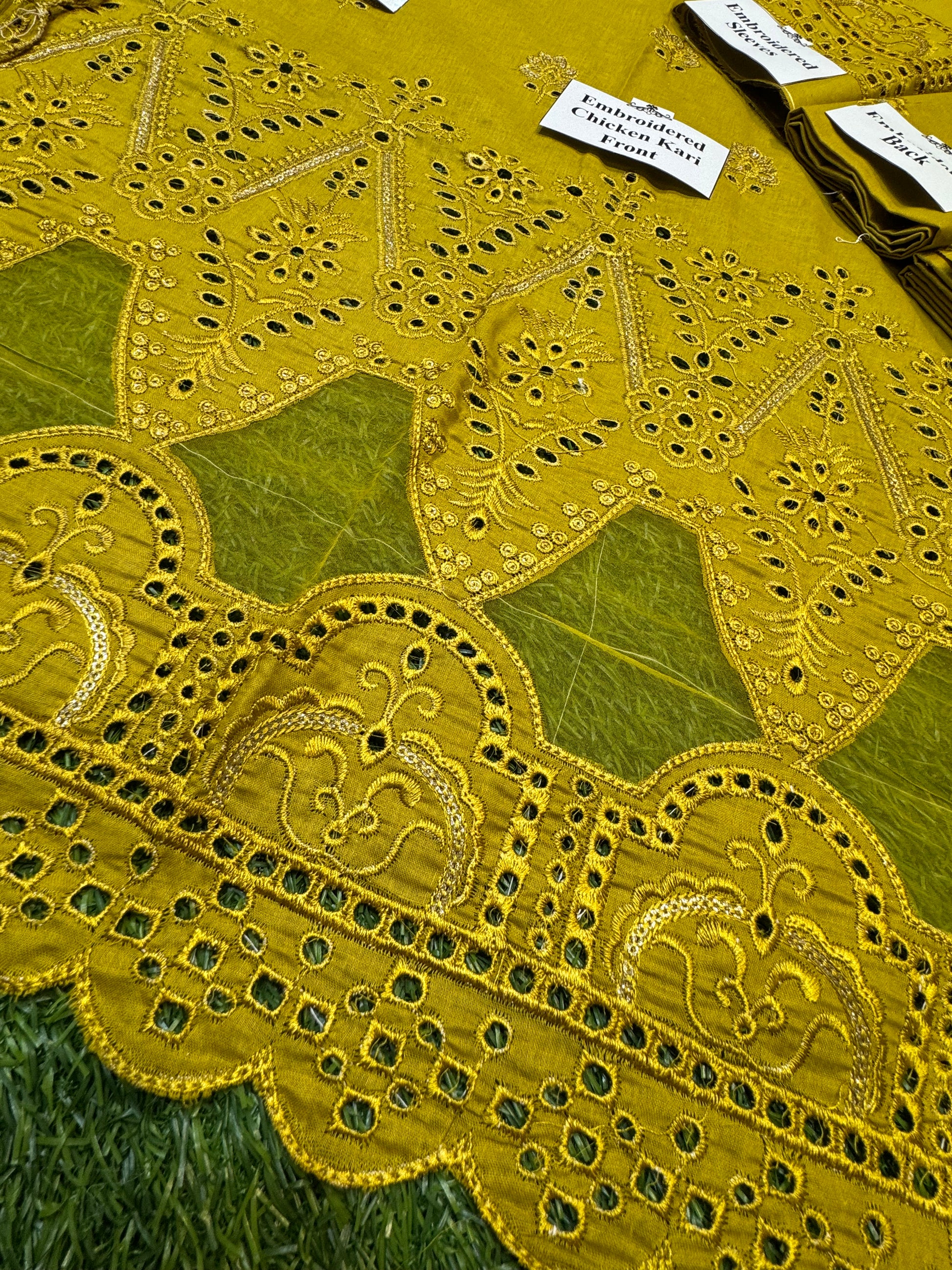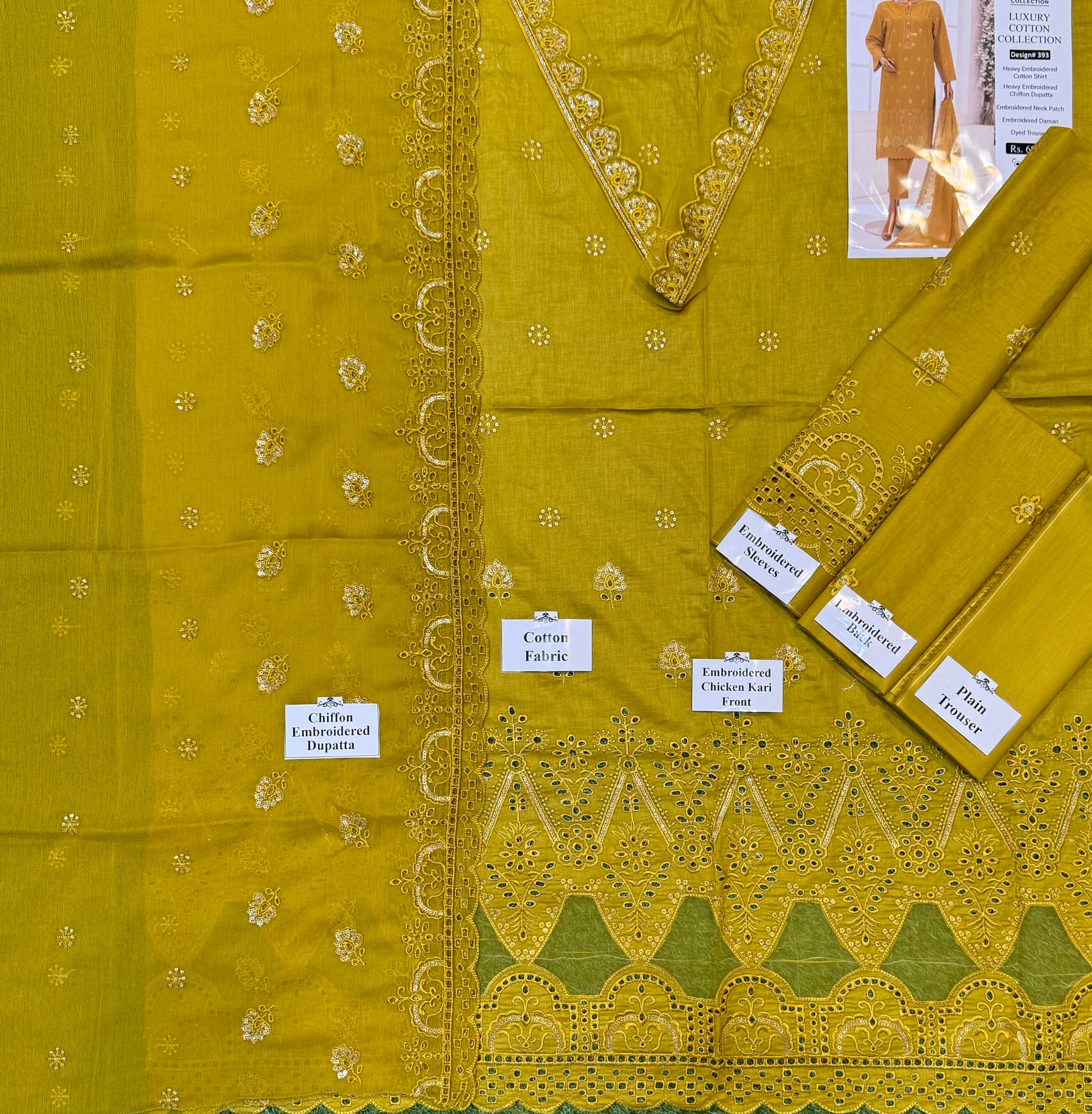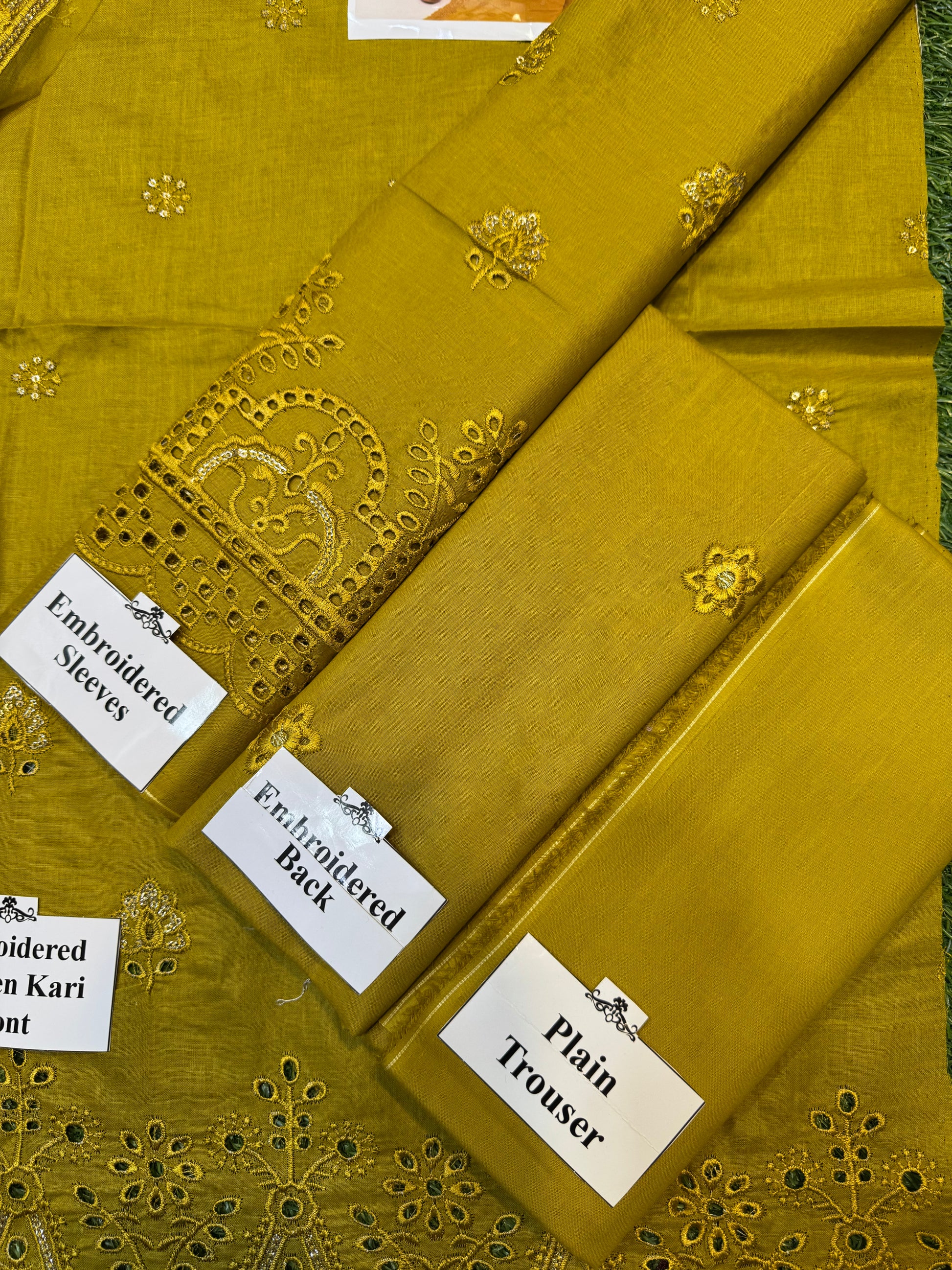 Elegant Embroidered Unstitched 3-Piece Cotton dress