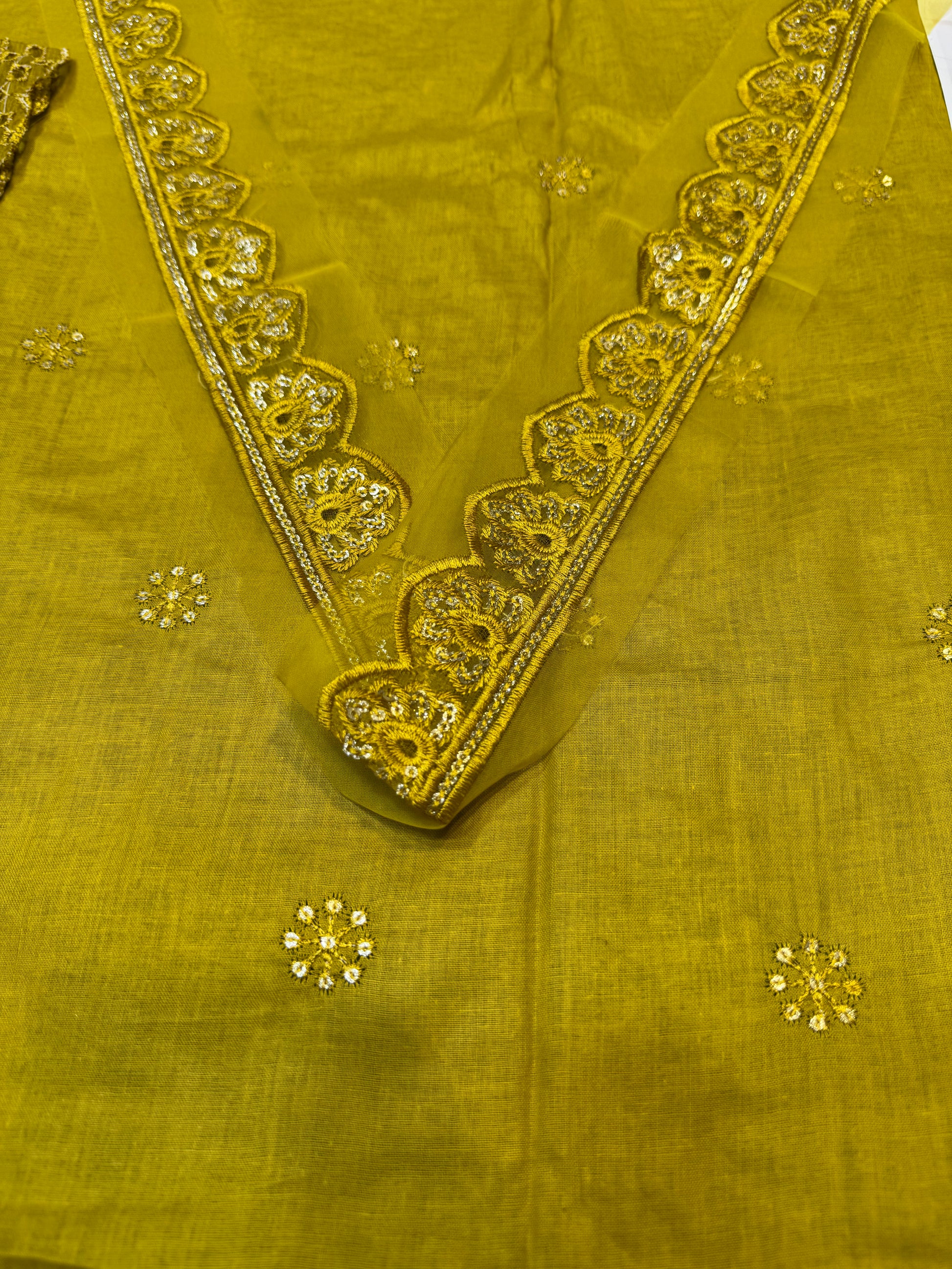 * Front: Boring Chikankari, Same Thread & Sequins Embroidery With Daman Cutwork