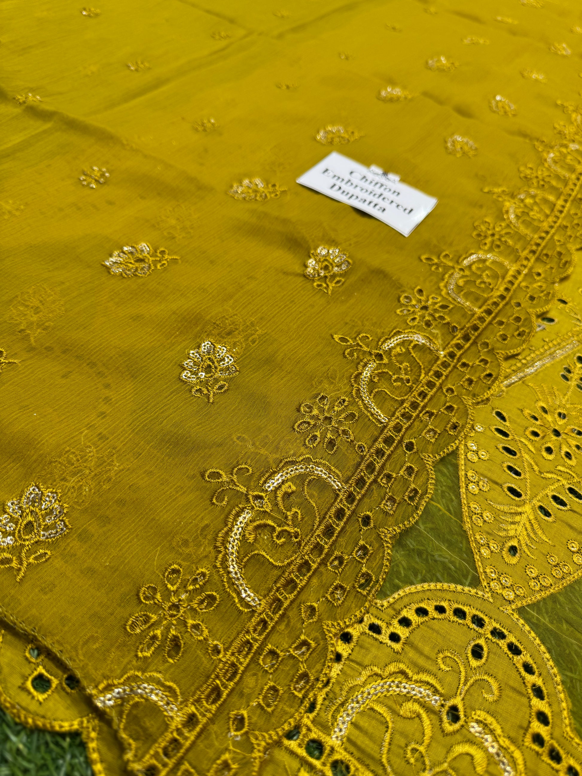 * Dupatta: Sequins Embroidered With Pallu Bidded & 2 Side Embroidered Borders