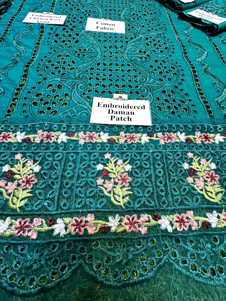 Elegant Embroidered Unstitched 3-Piece Cotton dress