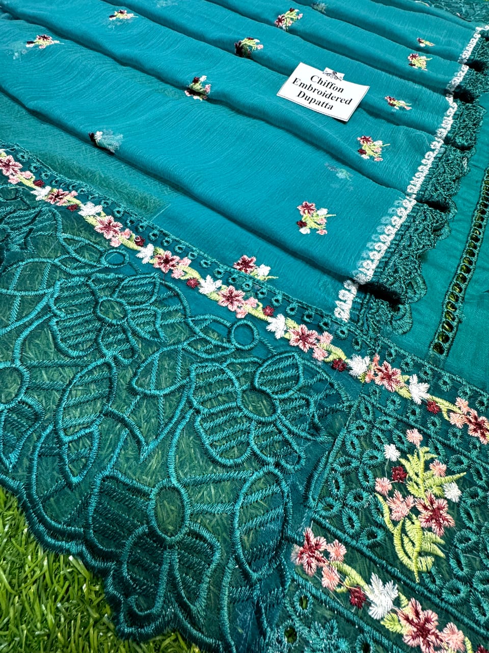 ✔️ Embroidered chiffon dupatta with 4-side border work