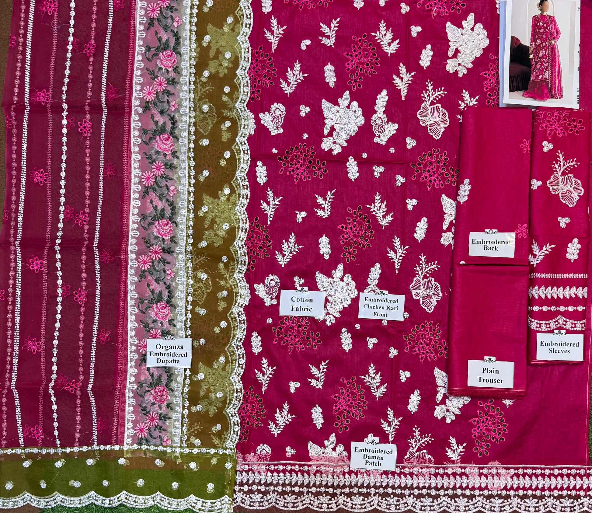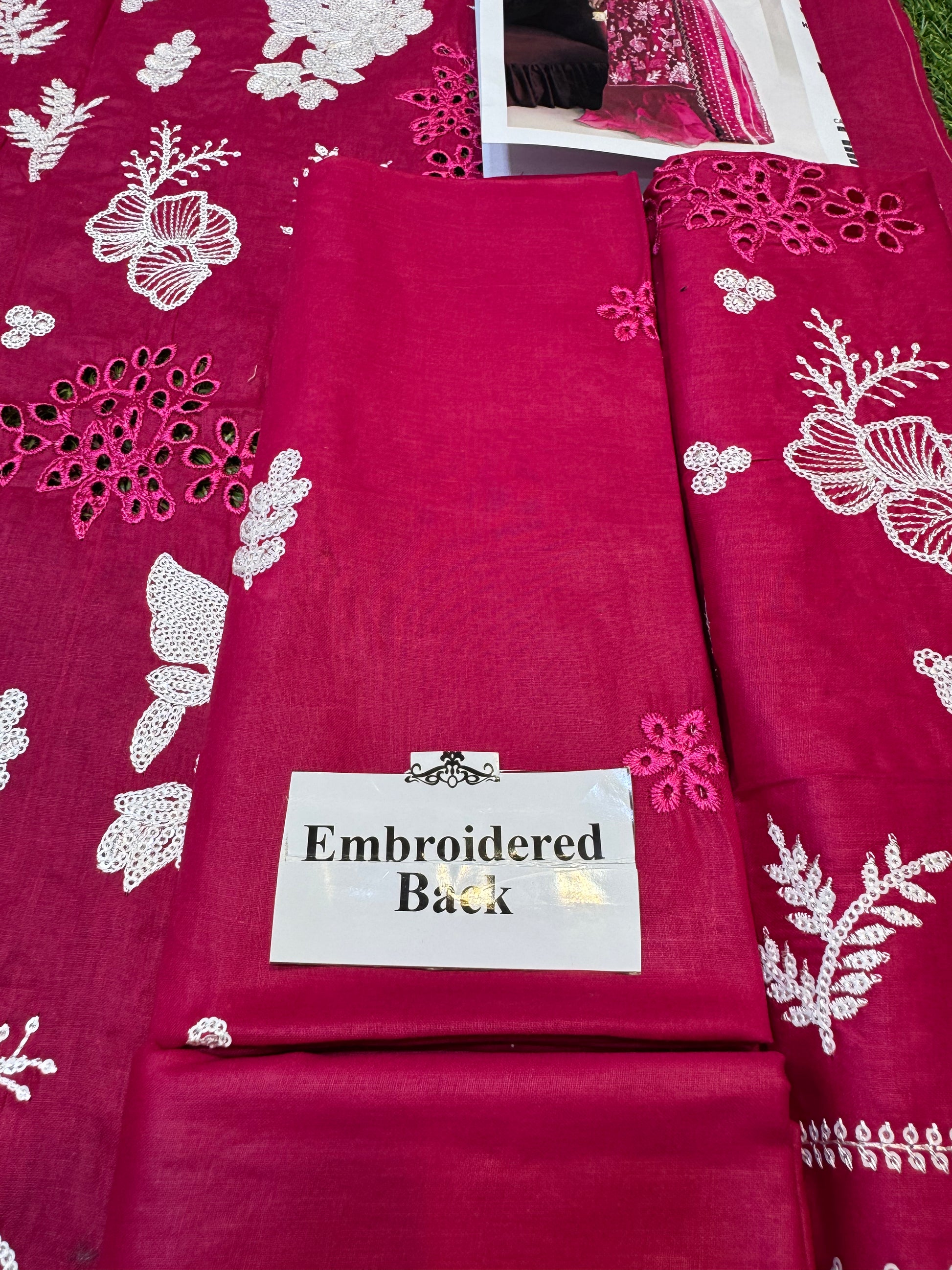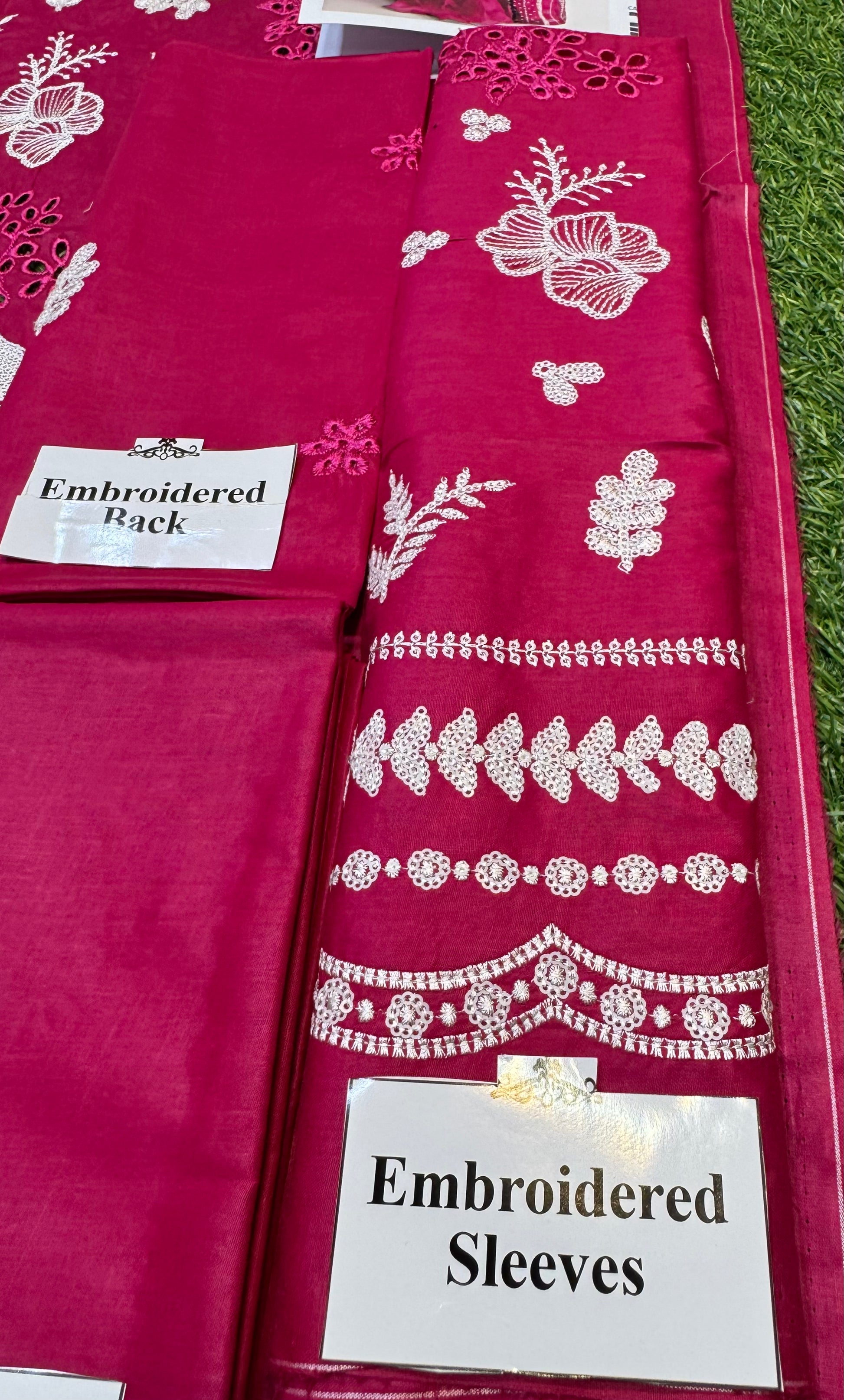 Elegant Embroidered Unstitched 3-Piece Cotton dress