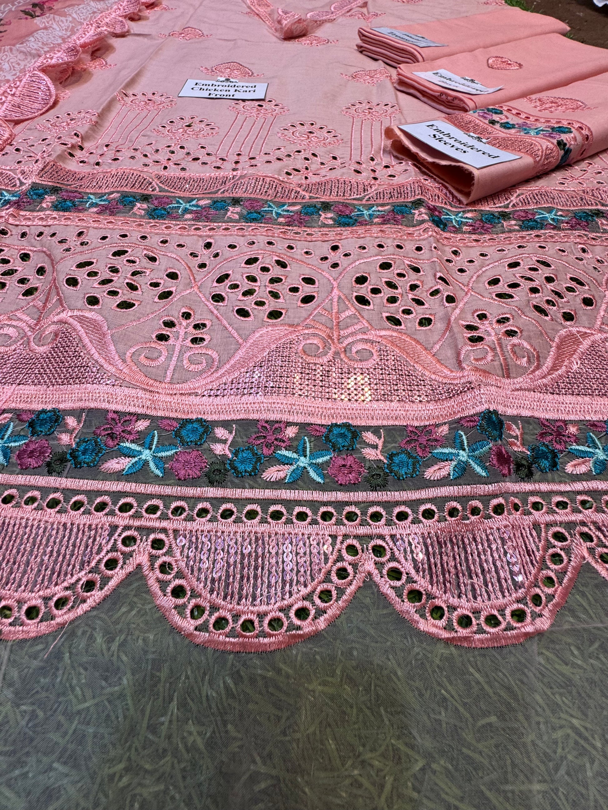 * Front: Boring Chikankari Multi & Same Thread Embroidery With Sequins Embroidery