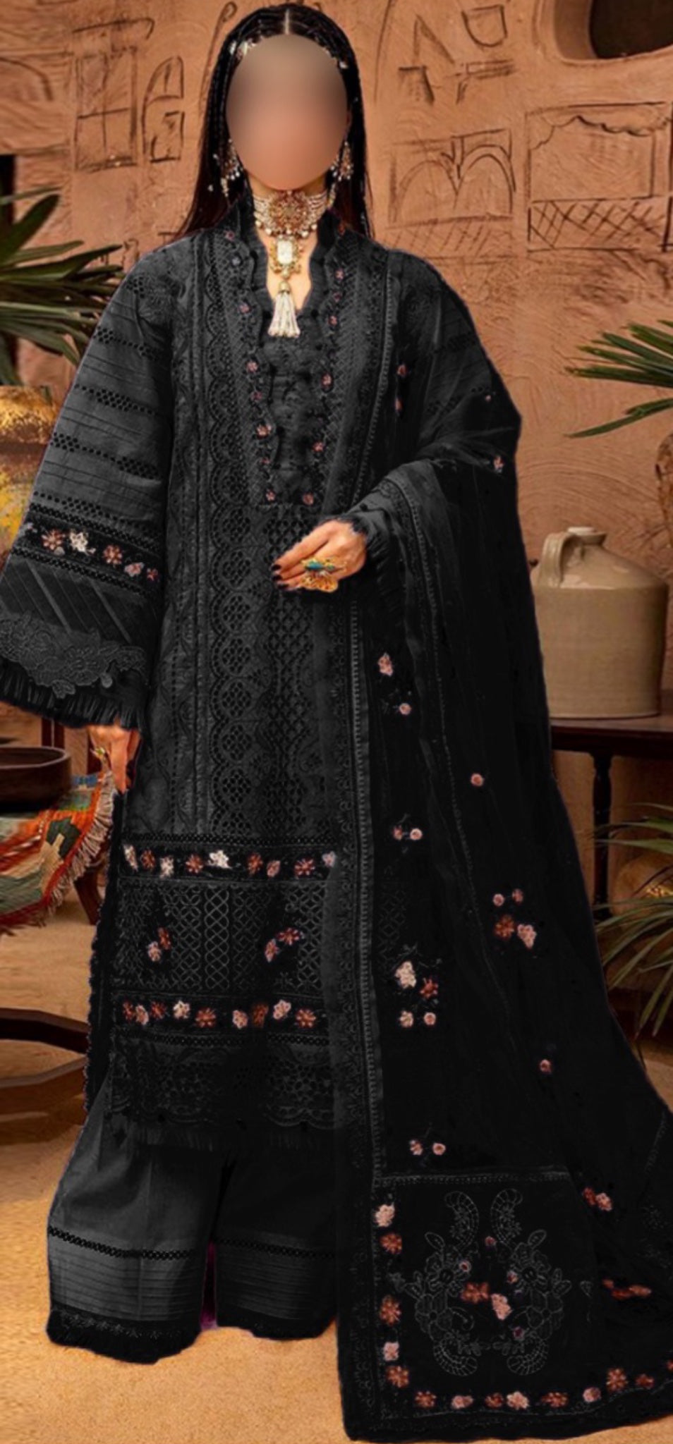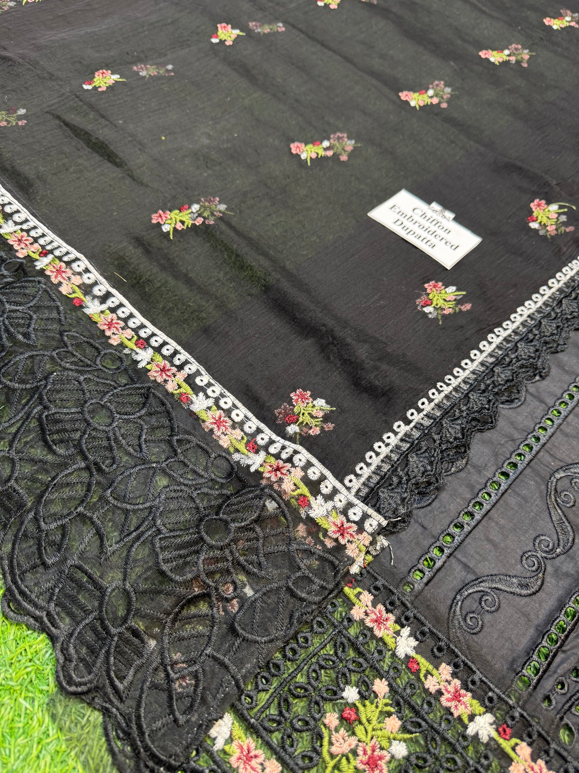 • Dupatta: Embroidered Chiffon-with 4 Side Embroidered Borders