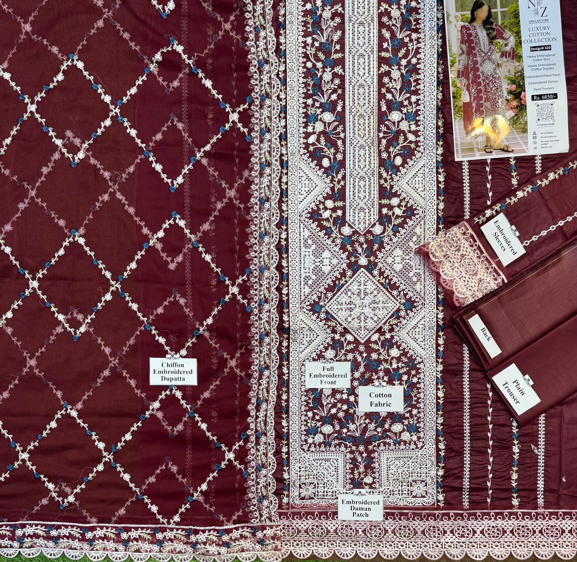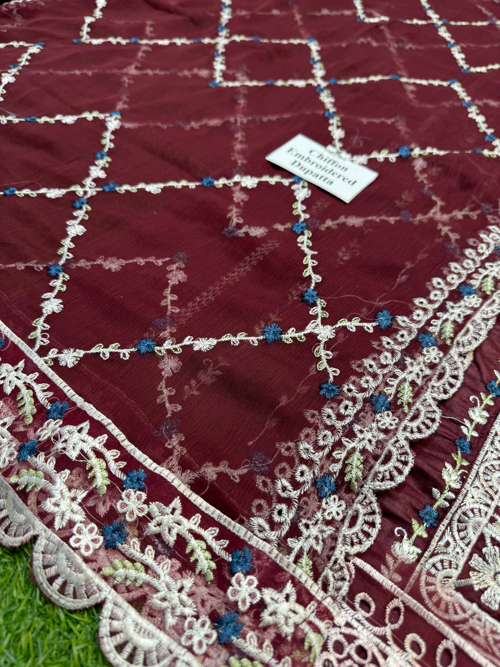 • Dupatta: Chiffon Heavy Embroidered, with 4 Side Embroidered Borders