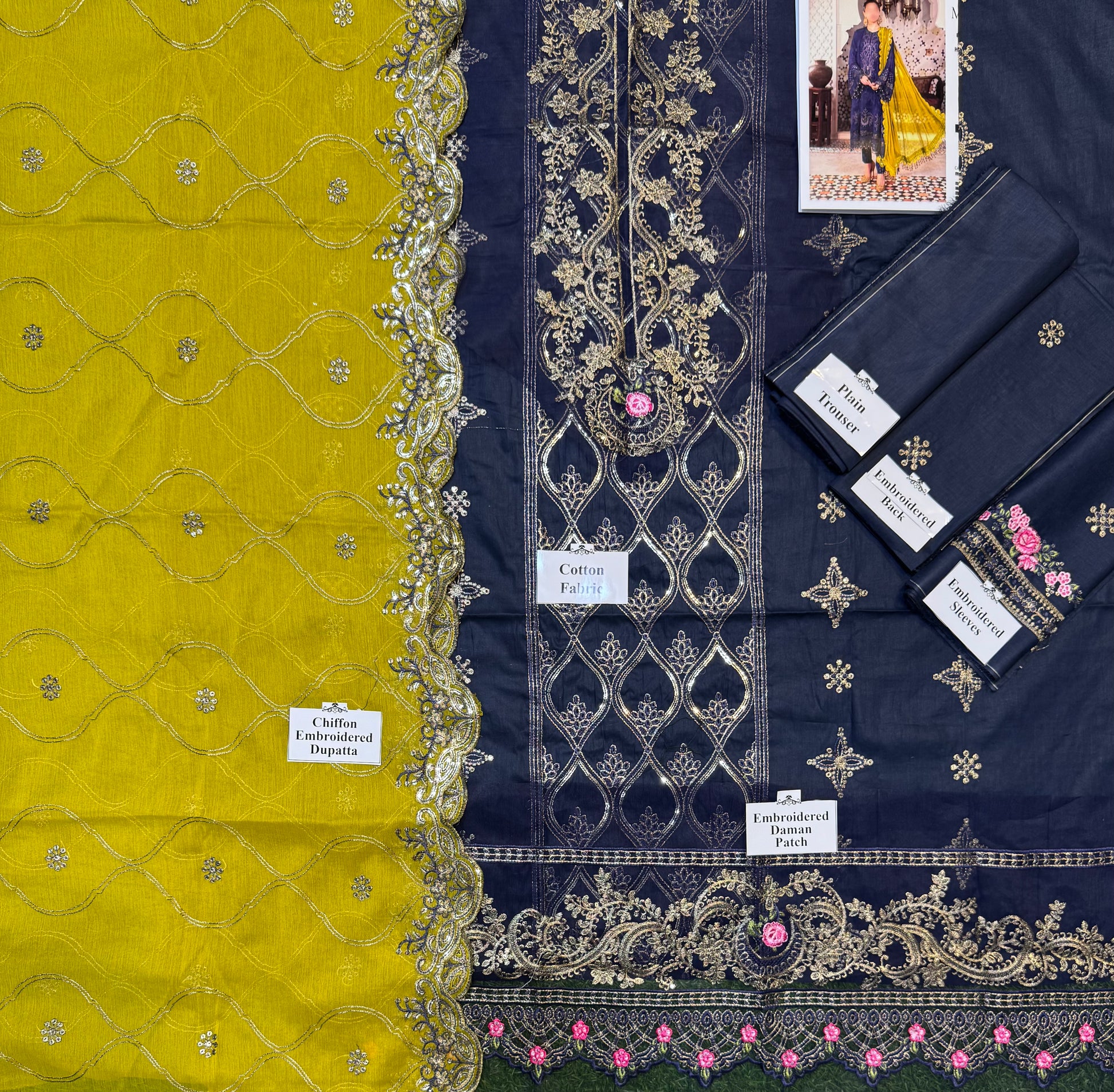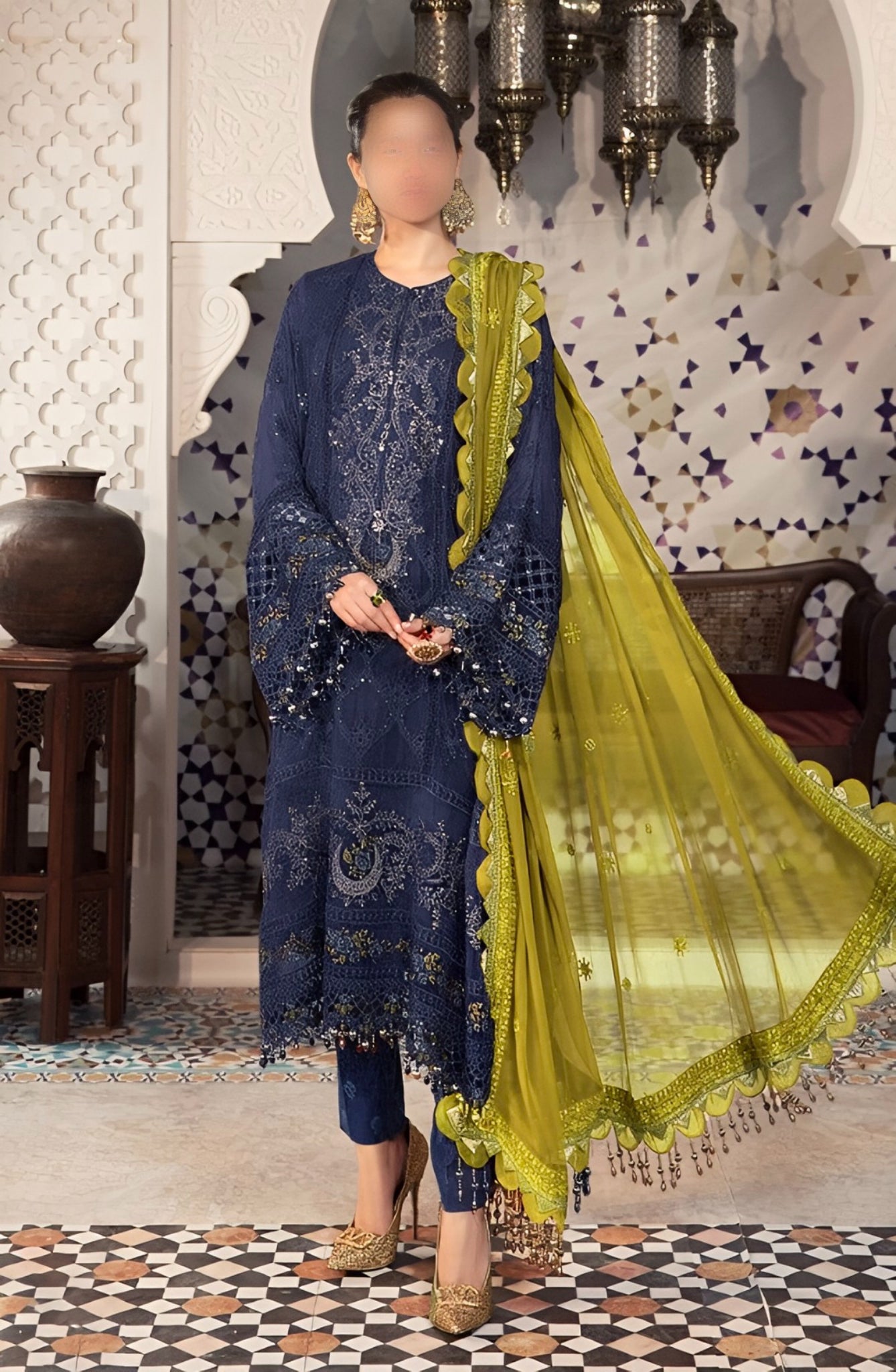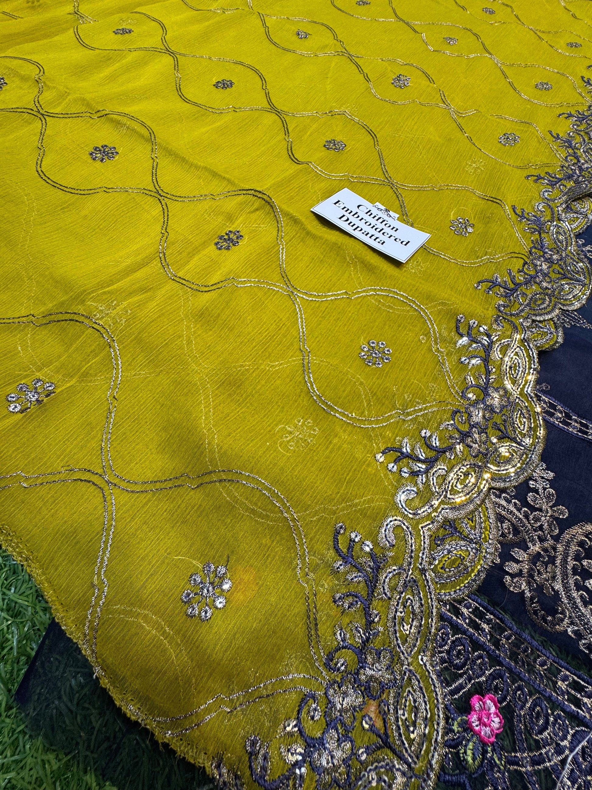 * Dupatta: Ready To Wear Embroidered Chiffon-with 2 Side Bidding & Side Embroidered Cutwork Borders