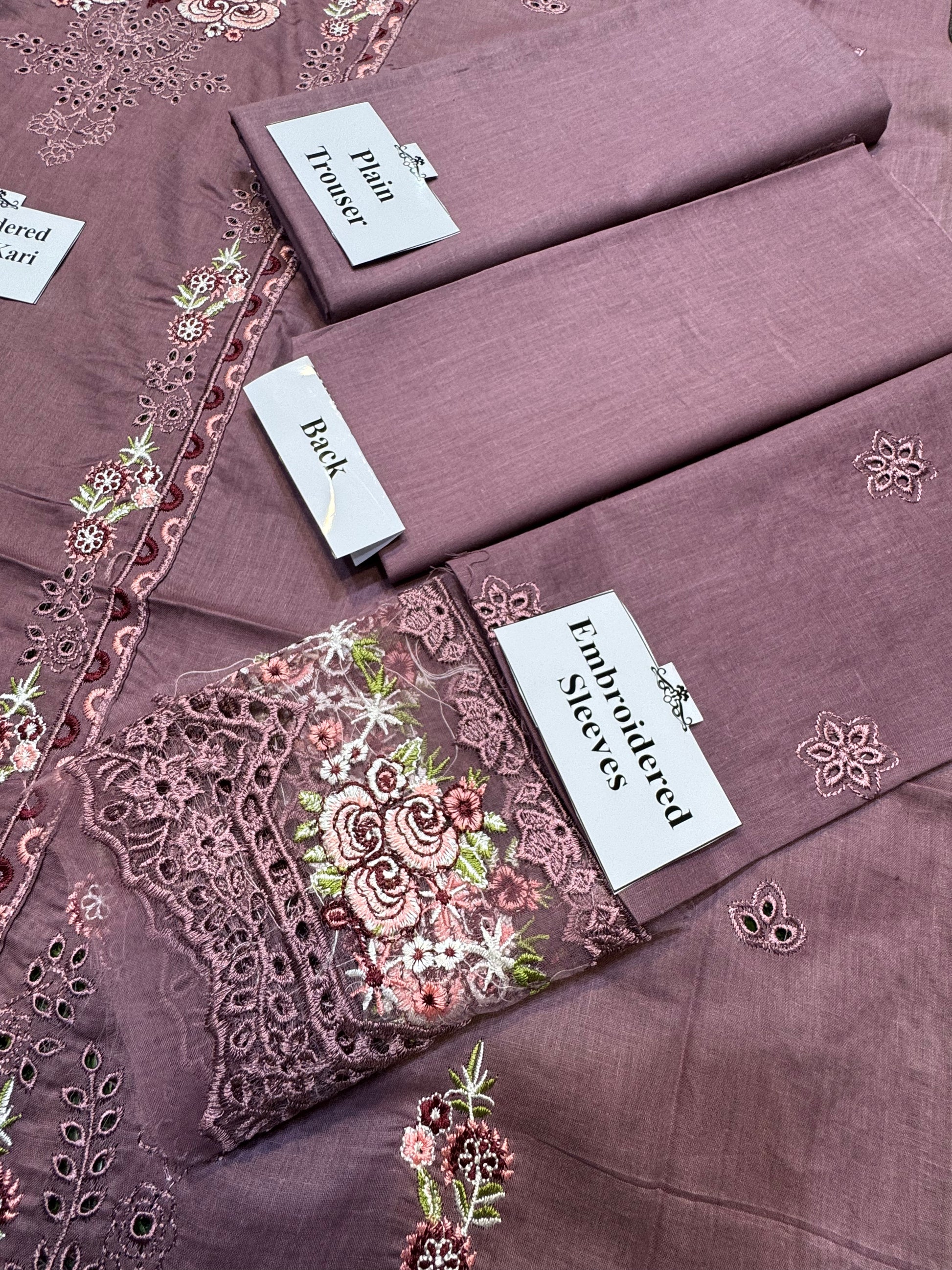 Premium Unstitched 3-Piece Cotton Suit – Chikankari Elegance