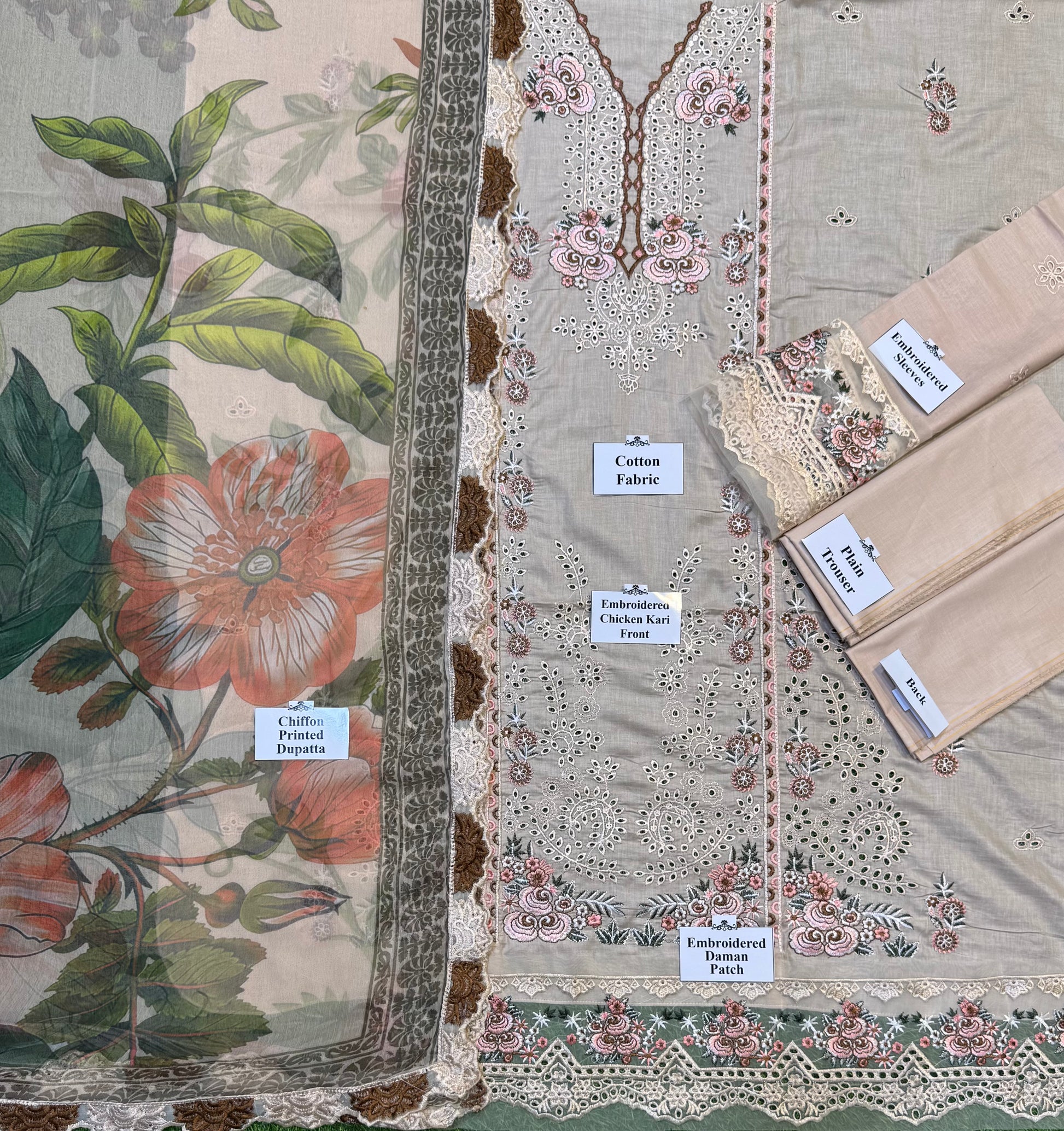 Premium Unstitched 3-Piece Cotton Suit – Chikankari Elegance
