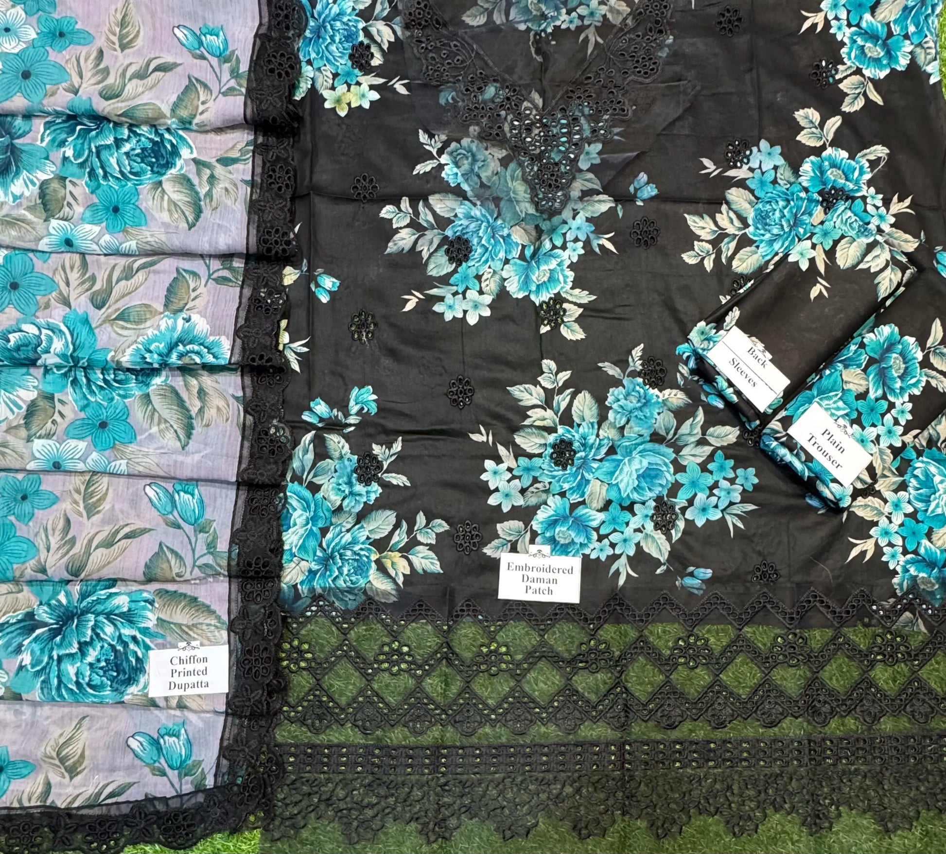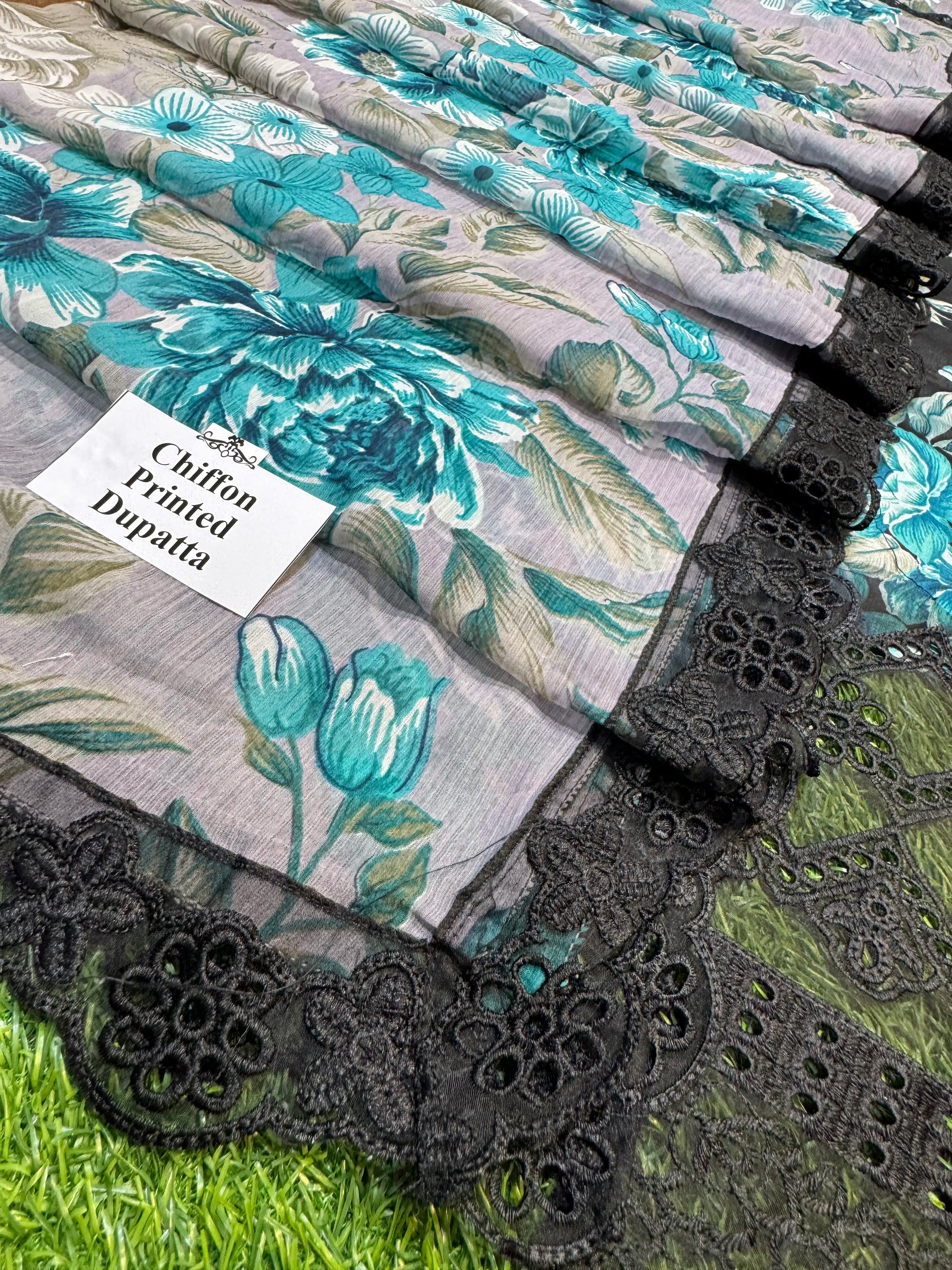 * Dupatta: Digital Printed Chiffon-with Four Side Embroidered Borders