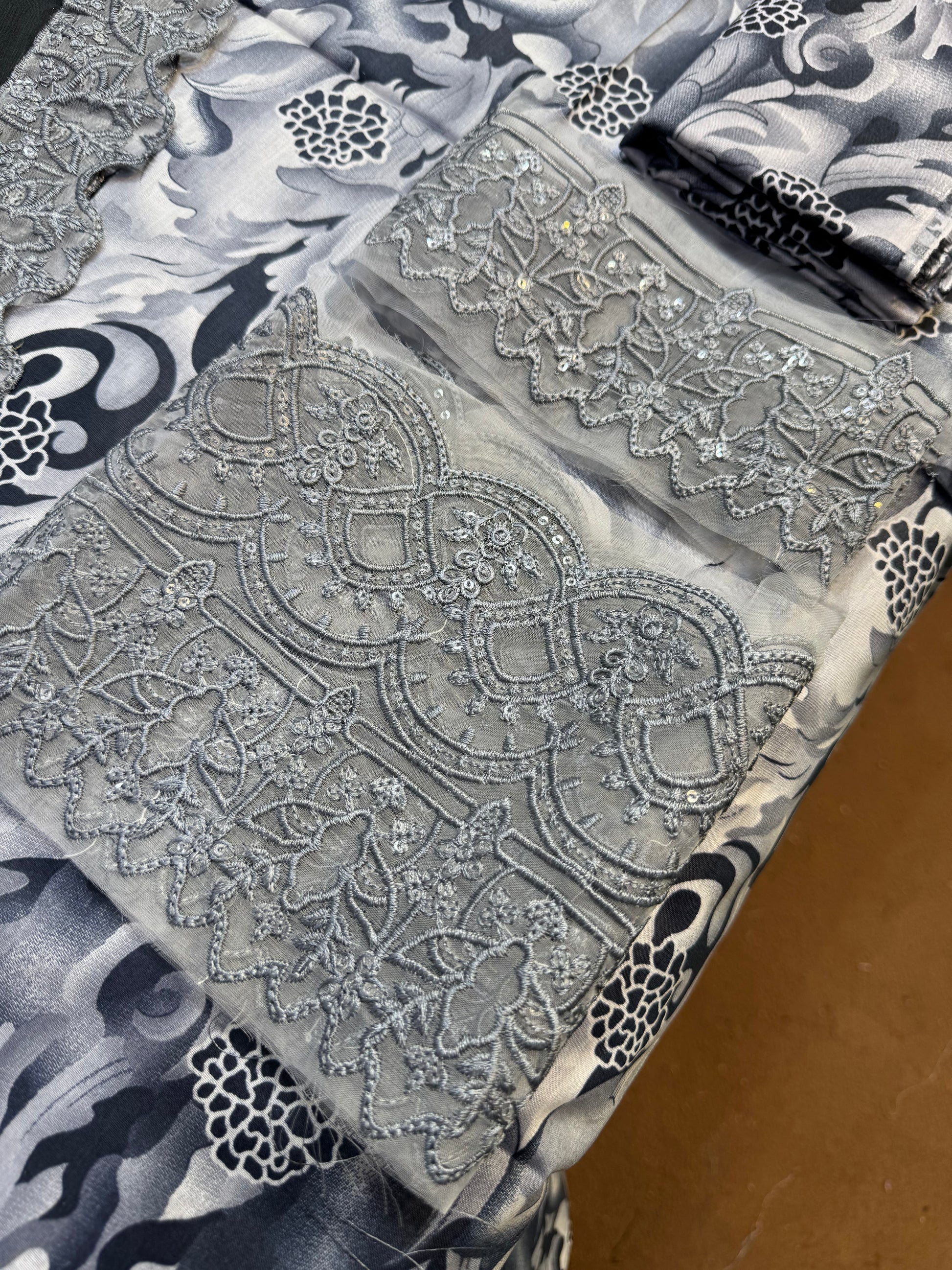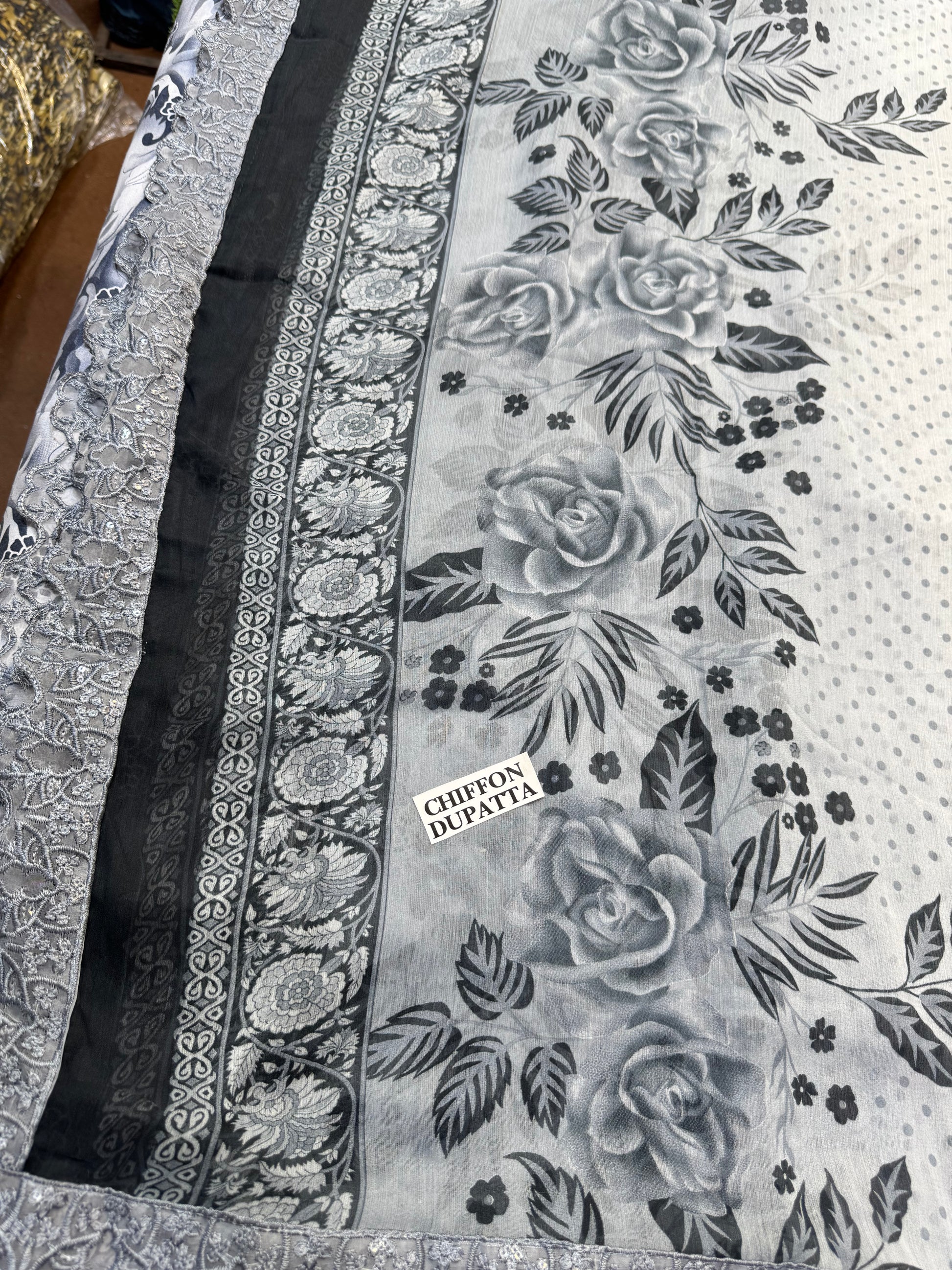 Dupatta: 4 Side Embroidered Lace Border Printed Chiffon Dupatta