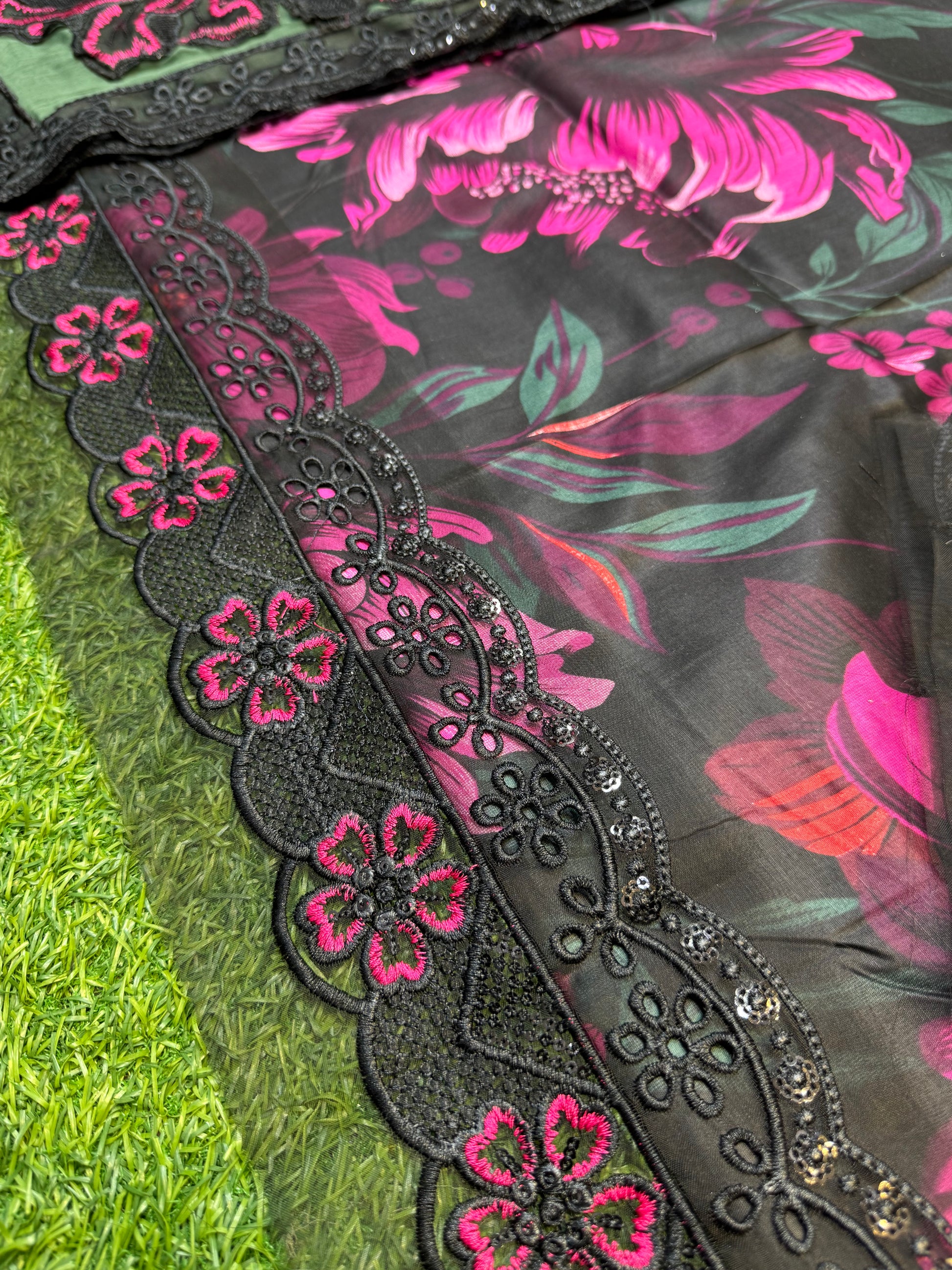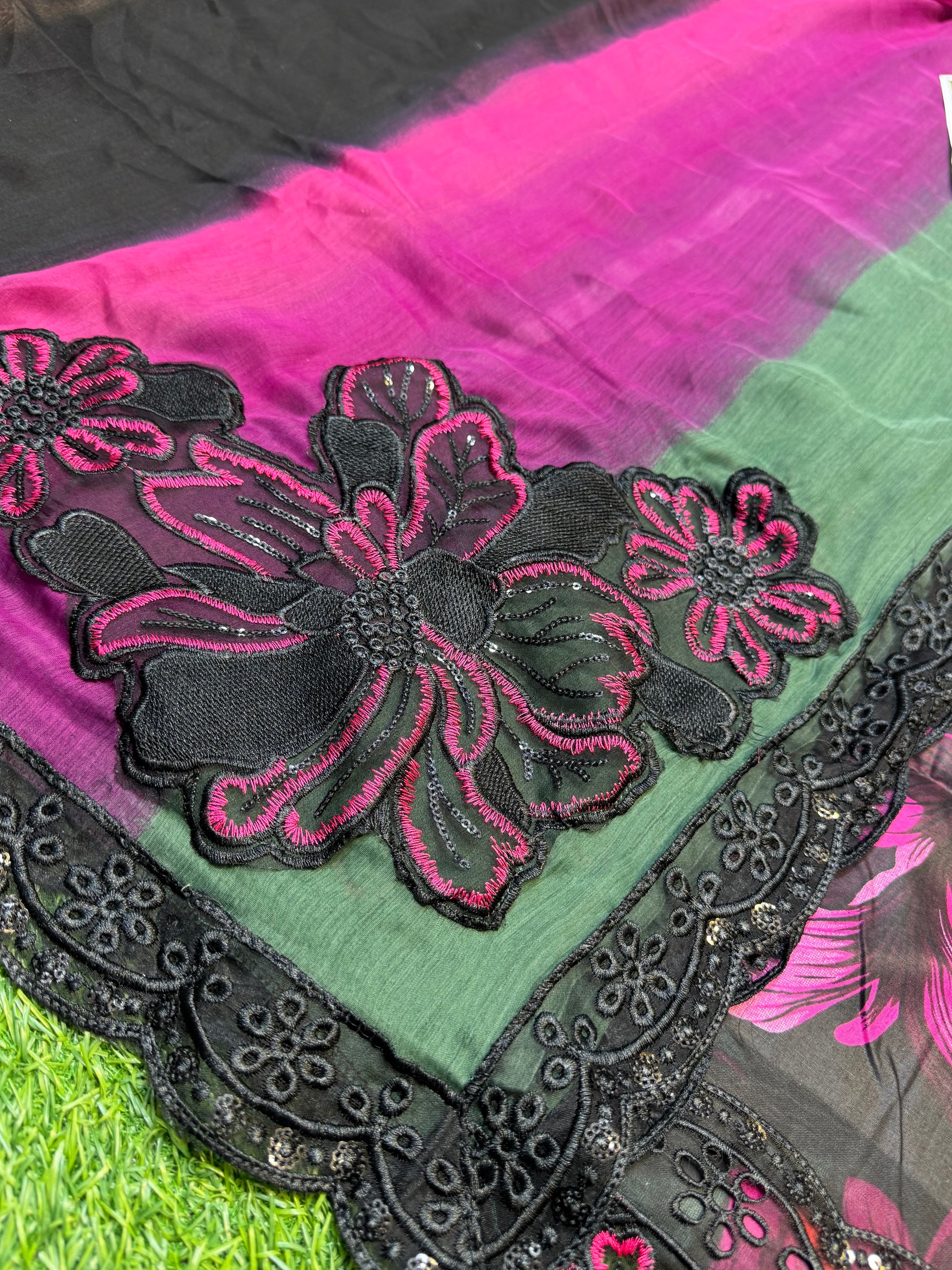 Dupatta Printed Indian Chiffon Dupatta With 4 Side Border Embroidery